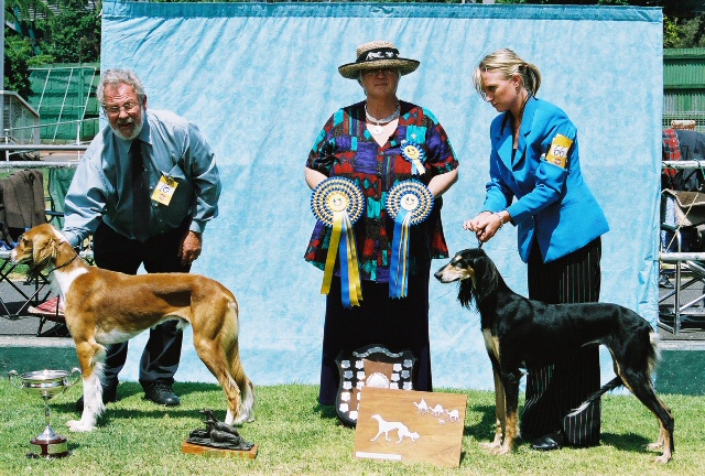 I love all dogs, pedigreed or not, but my deepest admiration is for those dogs originally bred to hunt at  full speed.  Their grace and power caught my eye, and their personalities caught my heart.  For me, it has been the Saluki for over forty years.  Jobs changed, homes came and went, but always I had a Saluki by my side.  Tom and I met at a Saluki show, and we combined our doggy households when we married.  Eventually I wanted to go beyond raising, showing, loving my breed and give back some of the pleasure I found NOT ME!in dogs.  We worked in clubs, put on dog shows and other events, and set up booths at Pet Expos so people could learn  more about our breed.  When the time was right, I applied for approval to judge the Saluki.