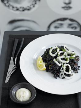 Arroz negro (Squid with rice cooked in squid ink) ~ a Mediterranean delicacy