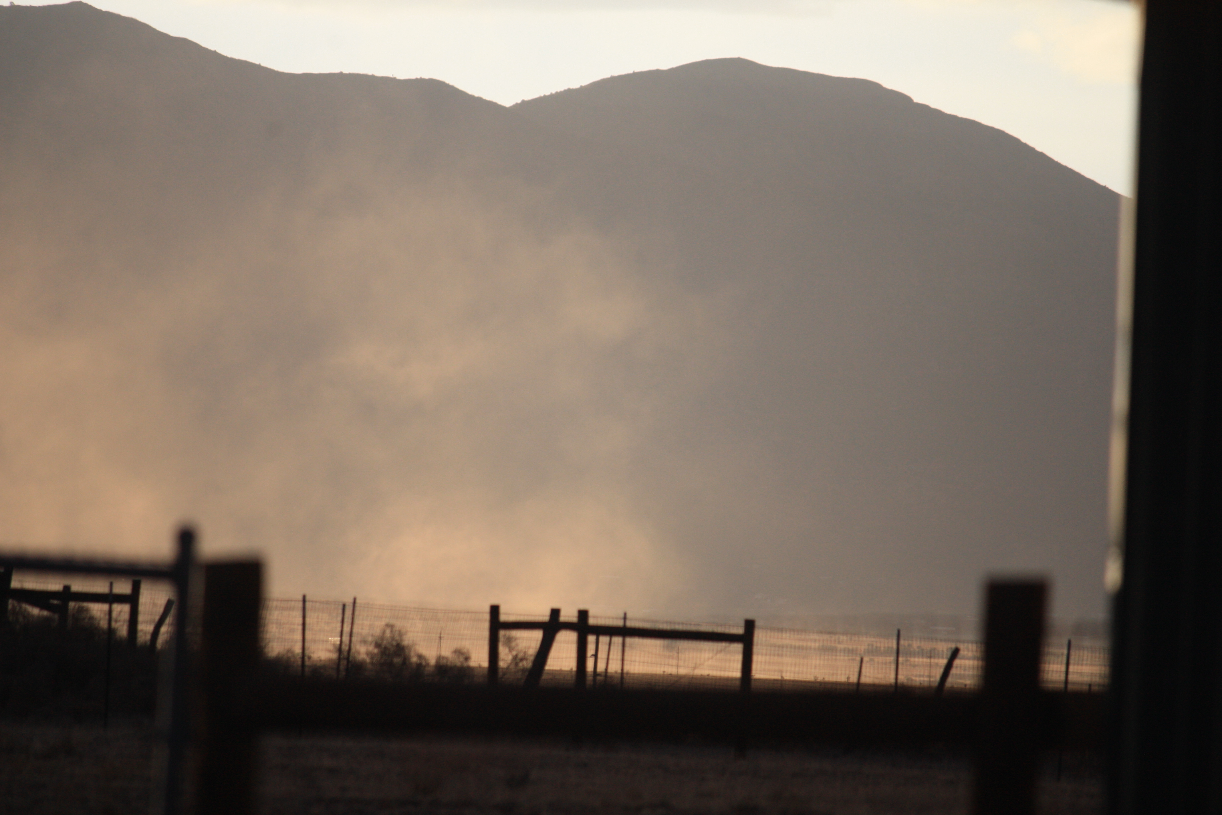 Well, there’s wind. And then there’s WIND as in relocation of top soil from one state to the next. I’m thinking a lot of ours is in Oklahoma. Still, the ‘ahem’ breeze does keep us markedly cooler than Albuquerque and in the summer that’s a huge plus. Sometimes it can get pretty exciting, especially during these dry days when it’s not unusual to see plumes of dust rising up all around.