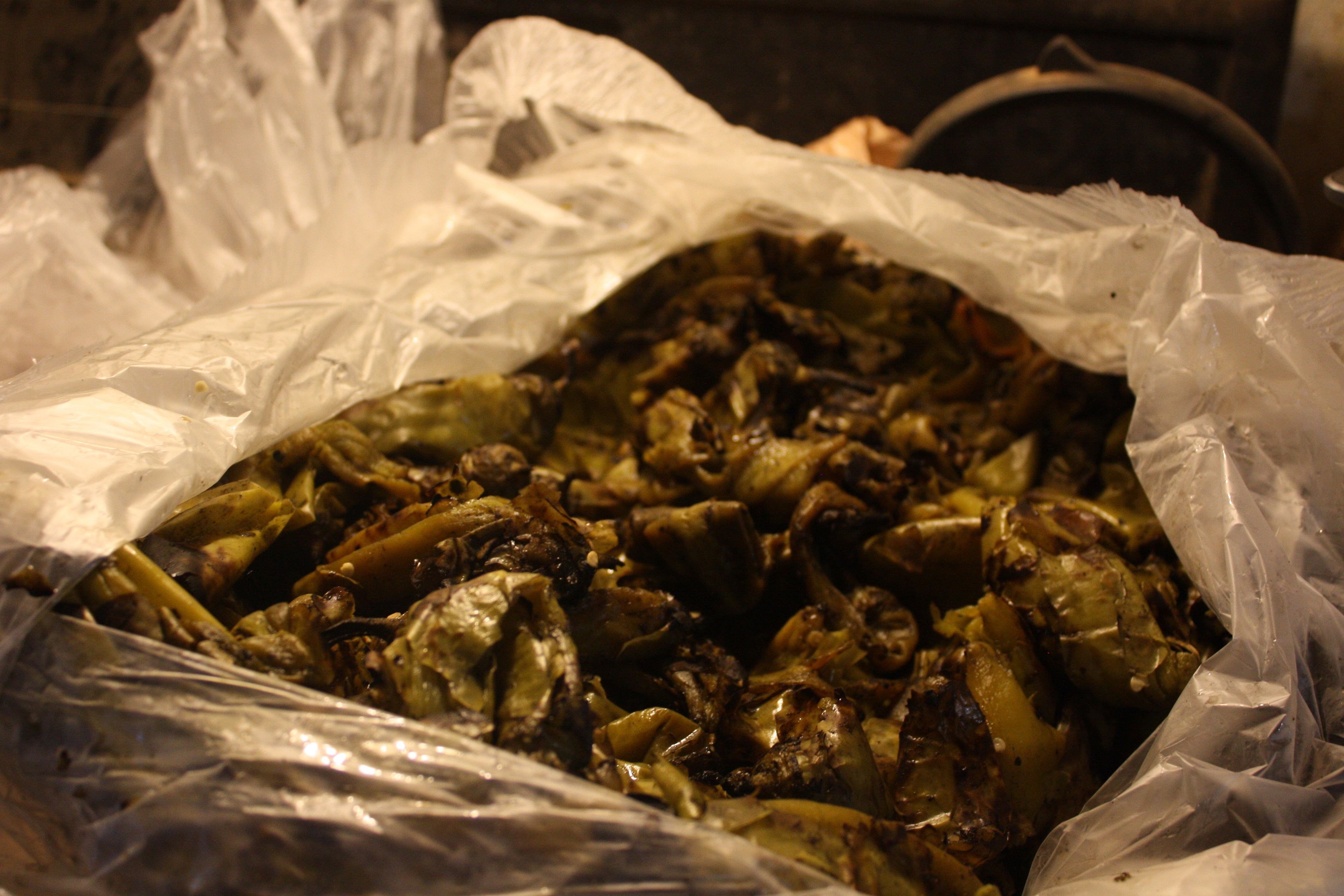 Those who have never been around green chiles are probably wondering why the roasting. Roasting or in some other way heating the chile, then storing in an air tight container helps to sweat off the tough skin so the meat is ready to eat. Some people roast their own either over coals or in a very hot oven. Those who haven’t been able to grow enough chile to roast their own buy in large bags to be roasted on site then brought home to put up in smaller plastic bags to be frozen until ready to use. Having bought my thirty pound bag of Hatch green chiles at the market where I find beef heart for my dogs, I now have a shelf in my freezer loaded with quart sized bags, and I’m wondering if I have enough to last the year. Hmmm.