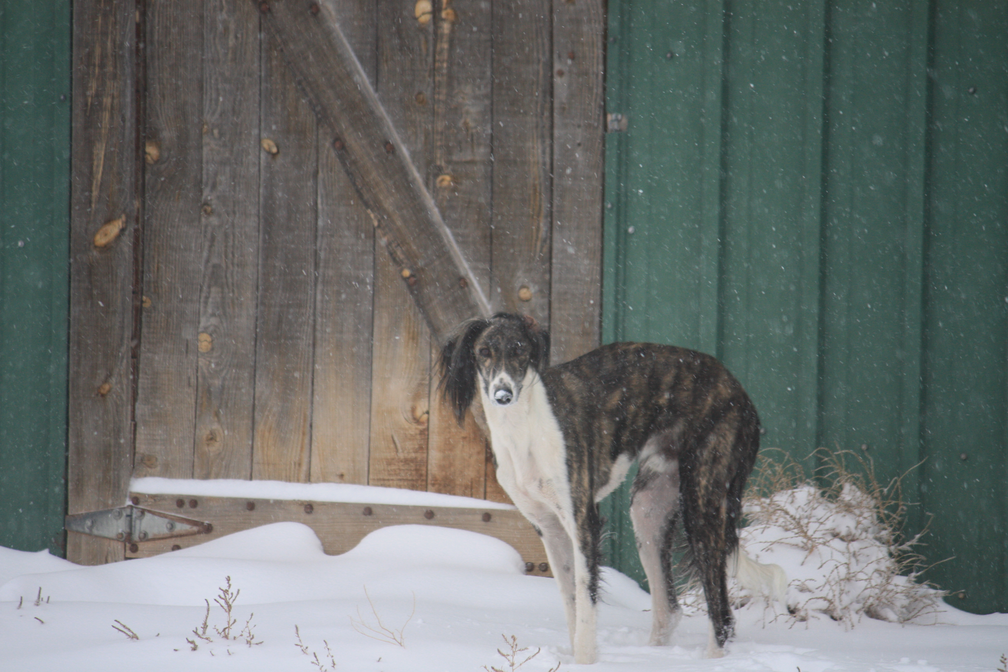 There are tracks in the snow. Fast dog feet, digging up the dry dirt. Slow dog feet tottering around the pen where wild birds come in for treats. The old boys are up and moving, their steps punctuated with wet spots. No blood in the wet, good to know. They’ll be fifteen tomorrow and they’re looking old. But still eating, still taking themselves out. Sleeping a lot. They’ve earned that sleep.